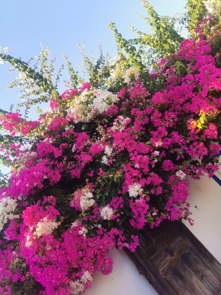 Ajungem in Bodrum si primul impact vizual e uau. Case albe, mici si boungaville roz.