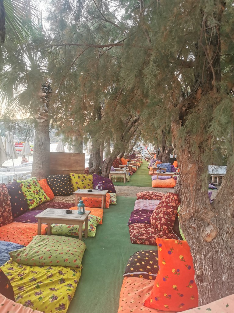 Ne-am cazat in statiunea Bitez, la 7 km de Bodrum, la un hotel aproape de plaja. Hotelul avea colaborari cu diferite plaje dintre care si cea din Bitez pe care nu am reusit sa facem plaja. Destul de aglomerata, inghesuita, ca marea majoritate a plajelor din Bodrum. Ne- a placut foarte mult o plaja la cativa km de Bitez, unde plateai doar ce consumai de la bar numita Dalga Social.