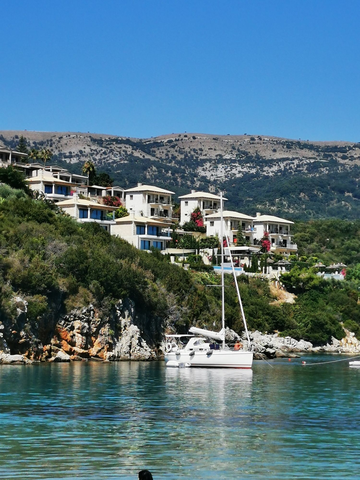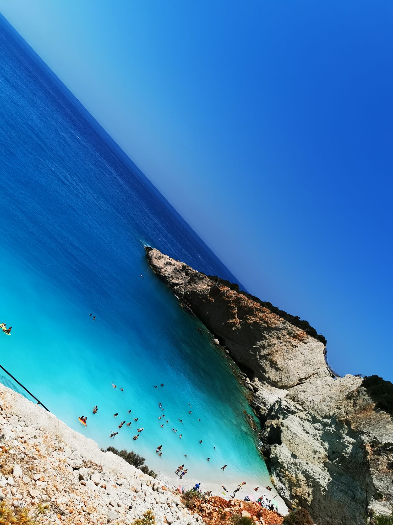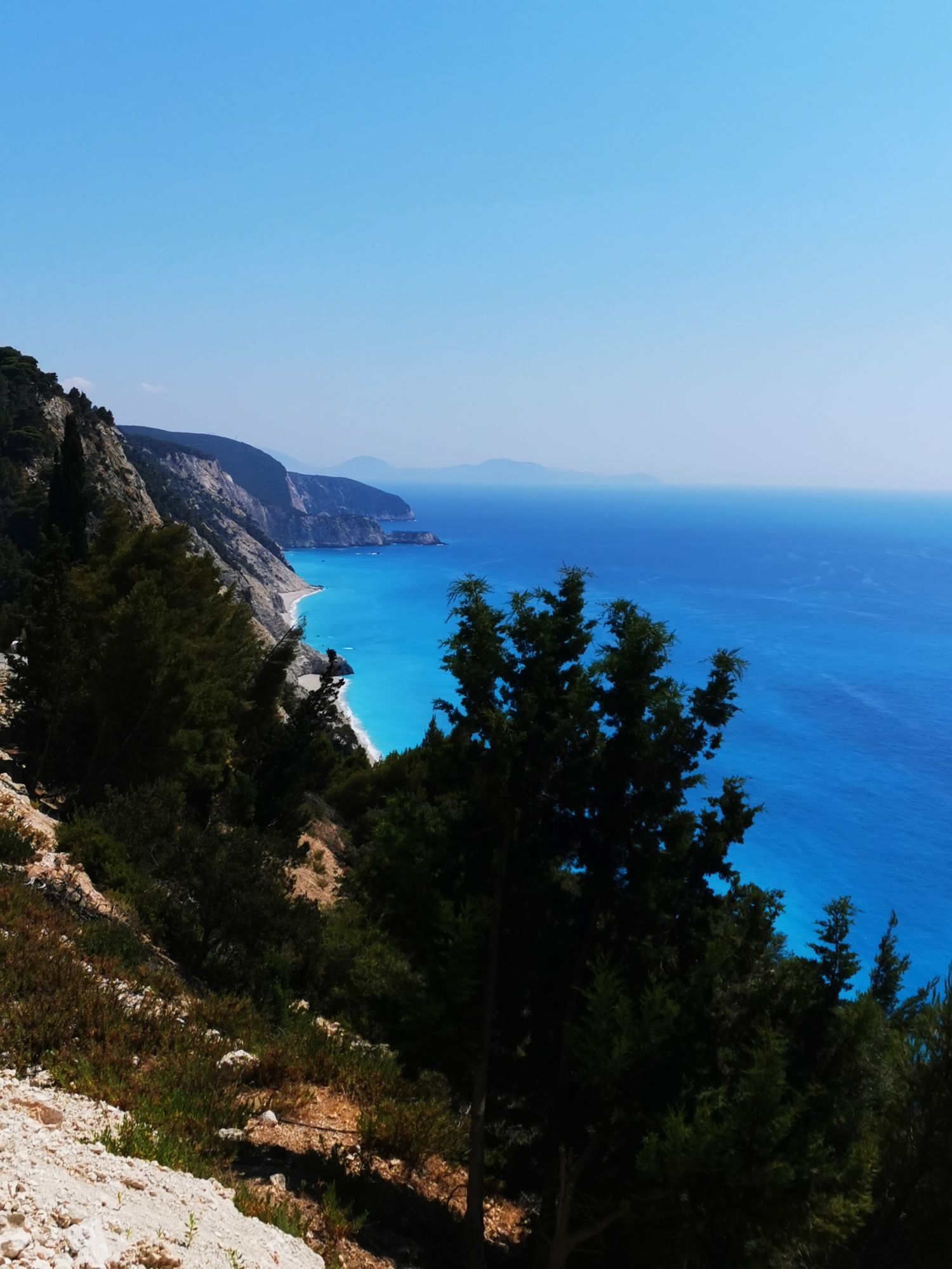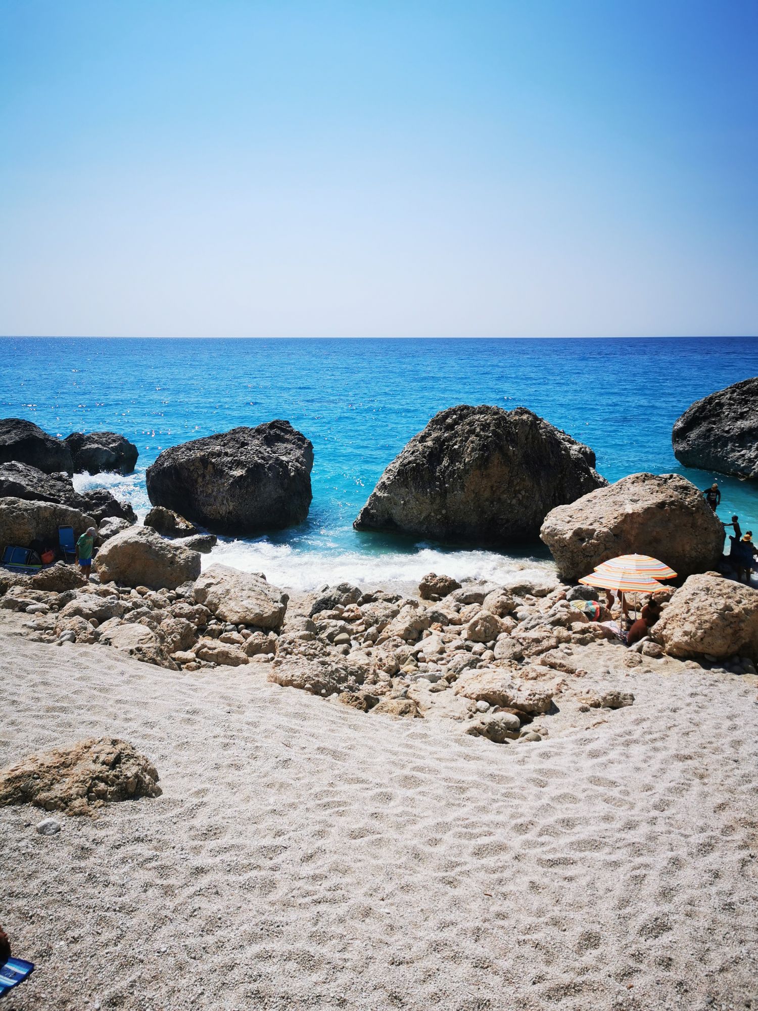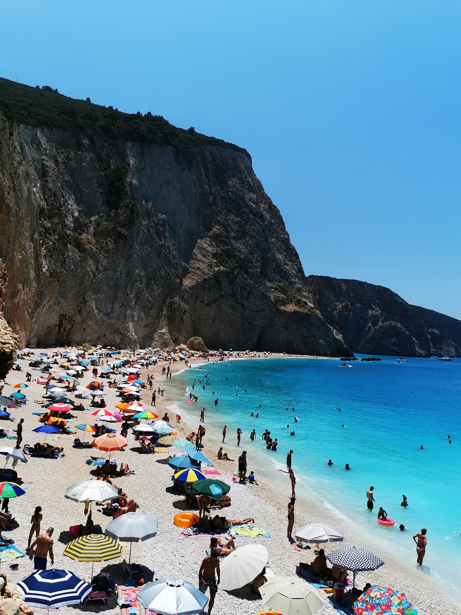 Am fi vrut noi sa vedem si Lefkada town, dar am avut cateva obiectii din partea copiilor. Am spus ca ramane pe alta data, iar acea alta data a venit in 2021 cu o vizita la Porto Katsiki si Egremni vazuta de sus, caci, fiind foarte cald, nu ne-am aventurat in plimbare pana pe plaja efectiv. Porto Katsiki cu pietre, apa adanca, acelasi albastru ireal ca la Kathisma si extrem de aglomerata. Parcare cu plata am gasit la o distanta de plaja destul de rezonabila.