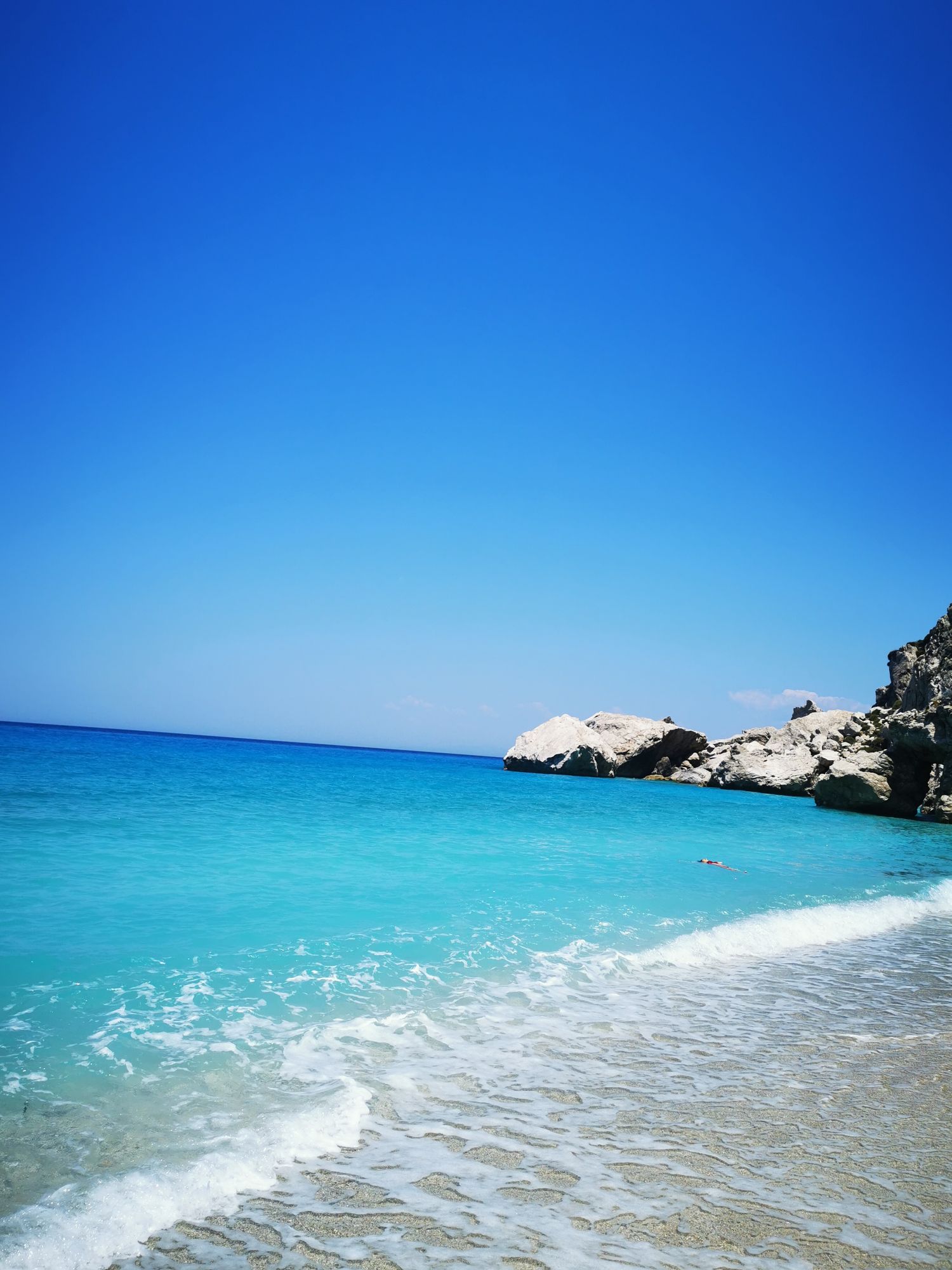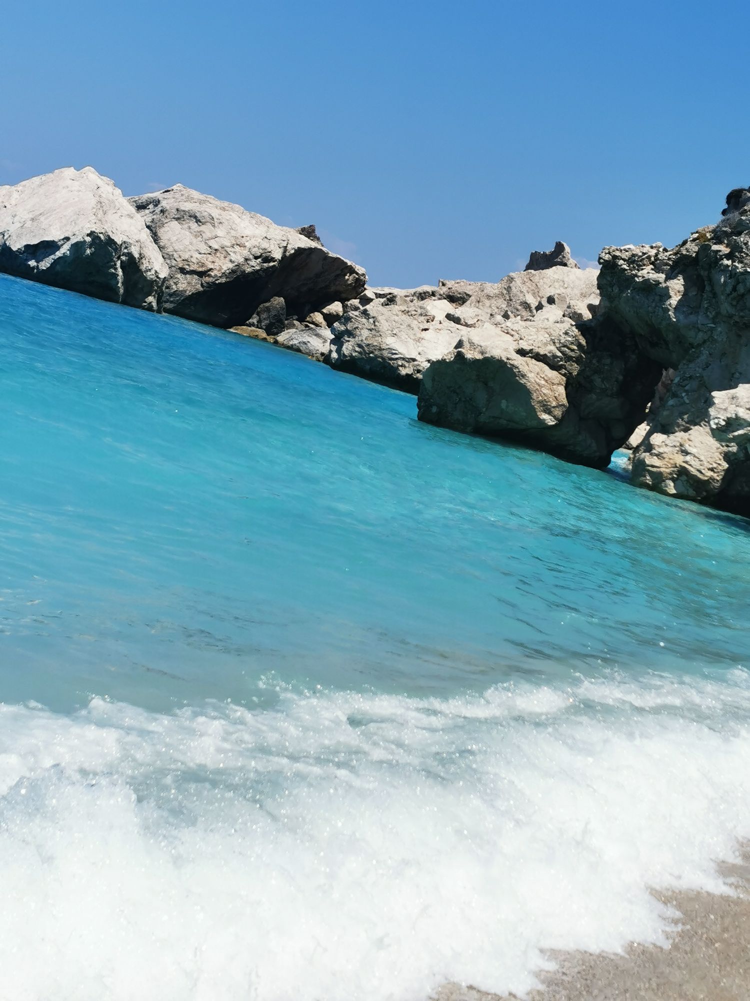 Pastrez spre finalul articolului insula Lefkada. In ambii ani consecutivi 2020 si 2021 am dedicat cate o zi acestei insule la care se ajunge usor din zona Parga (aproximativ 70 de km) si este legata de partea continentala printr-un tunel subavatic. Mi-a placut Lefkada. Nu stiu daca i-as dedica un concediu intreg, dar mi-a placut. Prima plaja vazuta a fost Kathisma. Albastrul marii de Lefkada e ireal, e imposibil de surprins in poze. Intrarea in apa e abrupta dupa primii 2 pasi, dar merita sa o privesti pana cazi in hipnoza. Am prins-o foarte calma ceea ce a fost foarte bine. E o plaja care necesita papuci de pietre. Neaparat. Locuri de parcare in spatele plajei( noi am ajuns la 9 dimineata), restaurante in spatele plajei, toalete. Cand am plecat la ora pranzului masinile erau parcate pana departe sus pe strada.