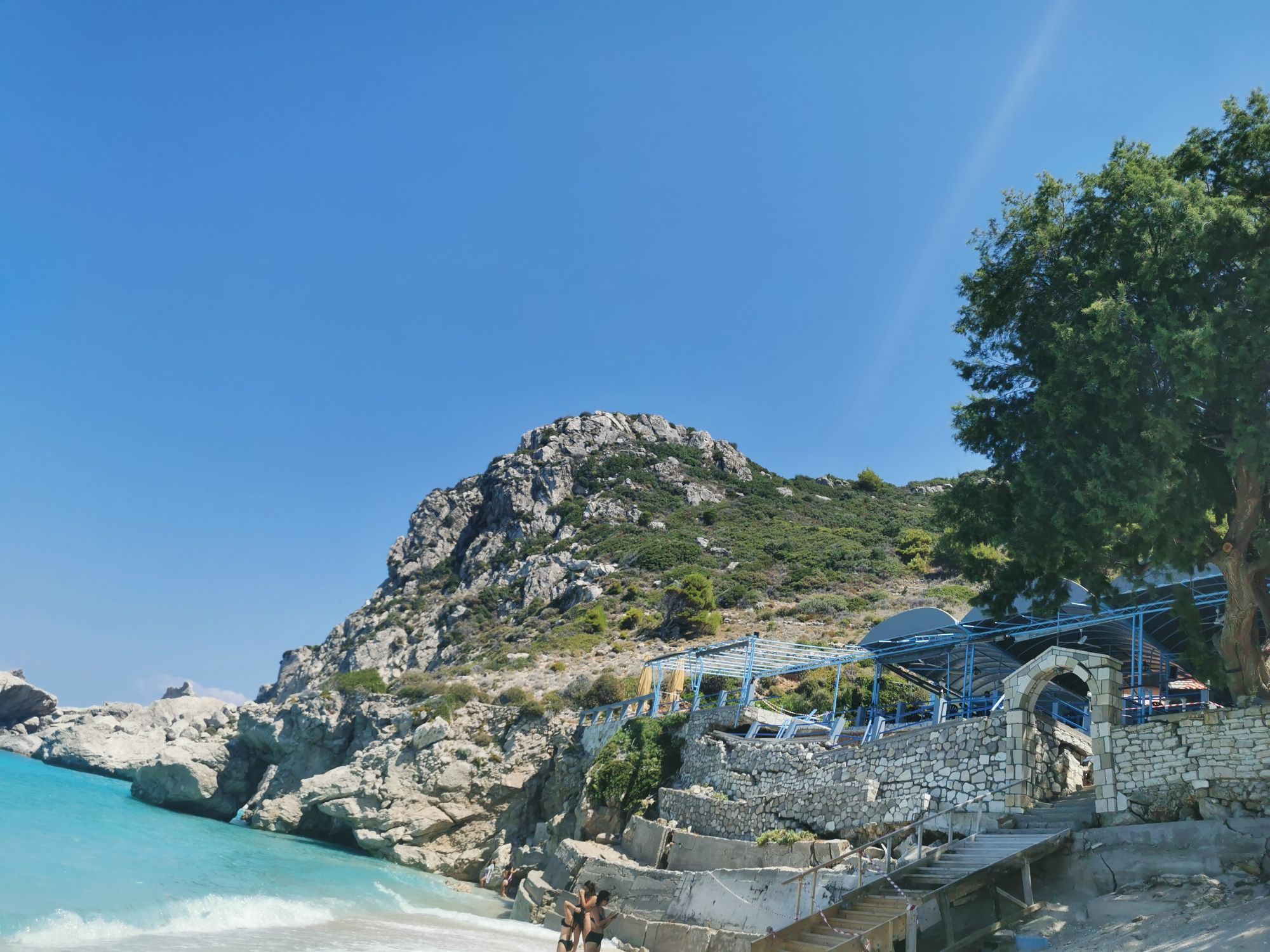 In zona am mai facut plaja pe Skala Beach o plaja neamenajata dar care noua ne-a placut foarte mult. E situata ca intr-un golf , cu o apa limpede si cu intrare lina. Aglomerata si calduroasa pentru ca nu prea adie vantul. Sus o terasa la umbra unde poti bea ceva racoritor.