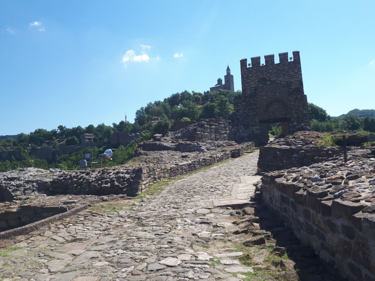 Cetatea Tsarevets este impresionanta ca si pozitionare, aflandu-se pe o colina deasupra raului Yantra. Prima datare e din sec.XII, iar in perioada lui de glorie a fost centru politic, religios, cultural al Imperiului Bulgar. In interiorul cetatii se gaseste si Biserica ” Sf.Dumitru” si turnul Baldachin in care am si urcat pentru a admira orasul. Foarte frumos e spectacolul de lumini care e, din ce am inteles, in fiecare sambata seara (noi l-am vazut din camera).