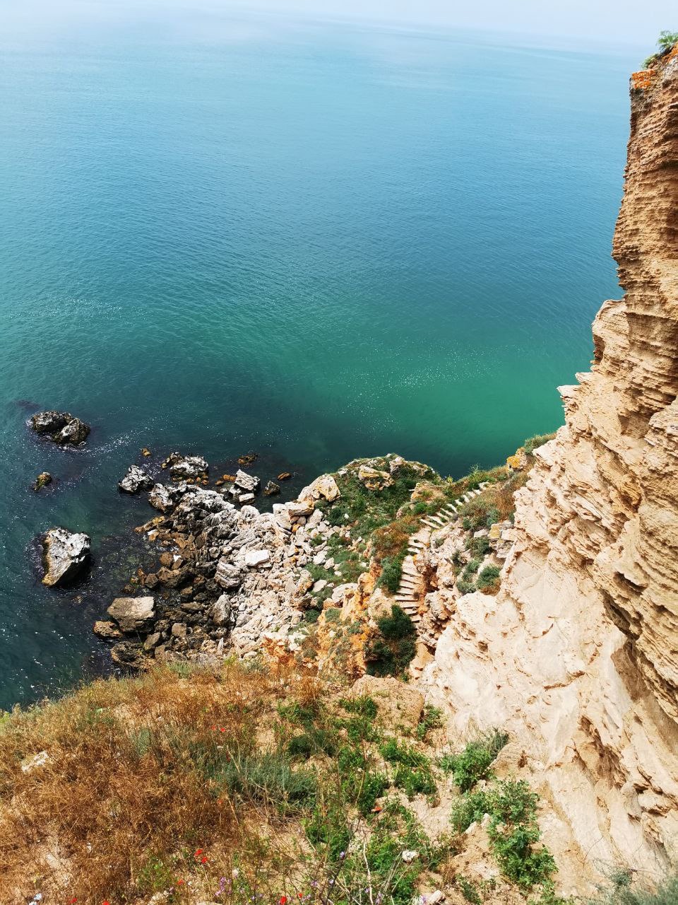 Kaliakra Cape, o alta destinatie in zona. Combinatie de stanci si mare, flori si muzeu. Un restaurant cu o priveliste superba spre ce a fost o data o fortificatie. Sunt mai multe legende legate de acest loc, una fiind despre 40 de fete bulgare care, pentru a scapa de otomani, s-au aruncat in mare nu inainte de a-si lega parul intre ele pentru a fi sigure ca nu ramane nici una.