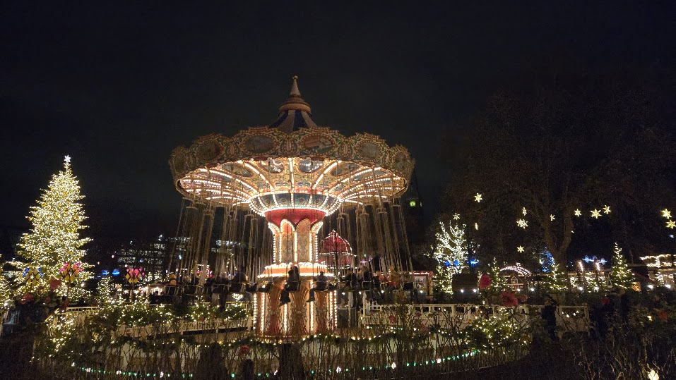 Seara am dedicat-o parcului Tivoli. Tivoli este al doilea cel mai vechi parc de distractii (a fost construit in 1843 de Georg Carstensen) si este de o frumusete aparte, mai ales in aceasta perioada a sarbatorilor de iarna. Intrarea a fost inclusa in cardul Copenhaga (este inclusa doar o intrare, dar ne-ar fi placut sa ne plimbam pe aici si in serile urmatoare), iar atractiile cu sau fara adrenalina 🙂 pot fi achitate separat.