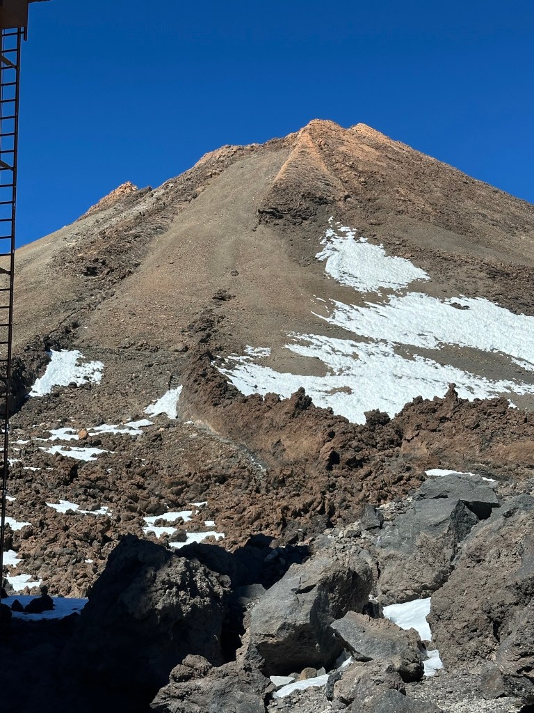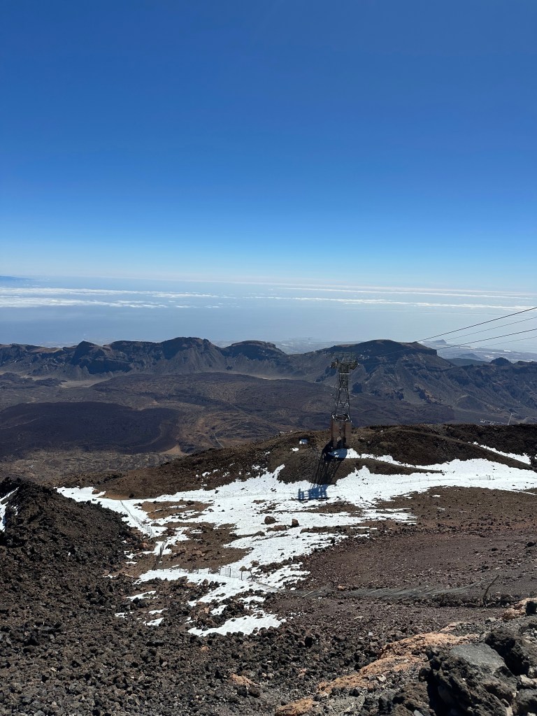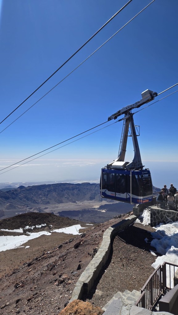 O noua zi, am pornit intr-o noua aventura, spre vulcanul Teide. Dupa un drum de o ora, am ajuns la telecabina situata la aproximativ 2300 m altitudine pentru a urca la 3555. Cu bilete cumparate online, din timp (locurile sunt limitate), ne -am asezat corespunzator la coada si in cateva minute am fost sus, dar nu cel mai sus. Pentru a urca pana in varf, la 3715 de m altitudine deasupra oceanului, este necesar un permis special pe care am considerat ca nu e necesar sa il achizitionam, desi unii din noi ar fi urcat pana la capat. Poate data viitoare.