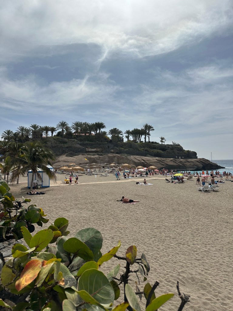 Pentru ca era o vreme extraordinar de frumoasa am pus o pauza de la plimbari si o zi ne-am bucurat de plaja. Am optat pentru Playa del Duque, care noua sincer ni s-a parut cea mai frumoasa. Aglomerata in week-end, dar destul de incapatoare pentru toata lumea. Sub palmieri o adevarata placere sa stai si sa te bucuri de relaxare.