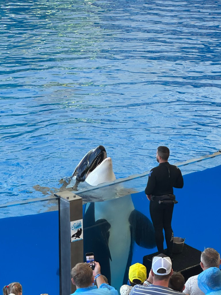 Spectacolul de orci a avut 4 vedete: o mama cu puiul ei Teno, nascut in captivitate si inca doua orci care, impreuna cu 3 dresori , au amuzat si incantat audienta timp de aproximativ 20 de minute. Atentie la „splash zone” te poti uda (dar si distra) serios.