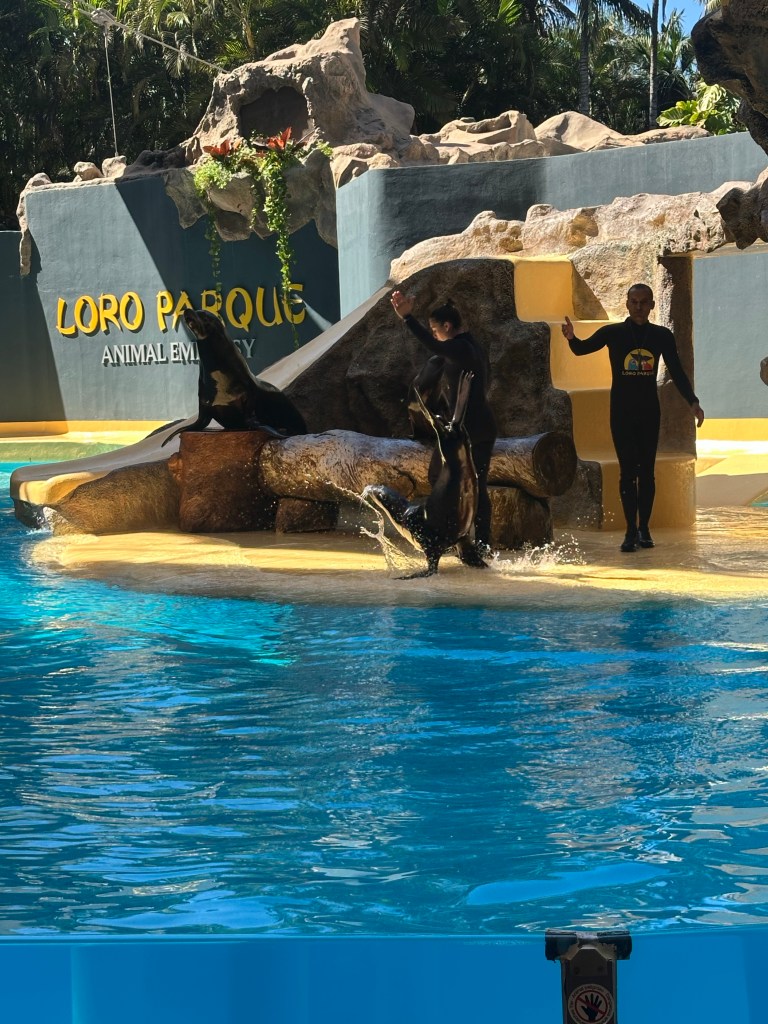 Cu biletele de intrare cumparate online de pe site-ul parcului (www.loropark.com), am ajuns in acest minunat parc, pentru cateva ore bune. Deschis in 1972, acest parc zoologic a fost dedicat initial papagalior (lucru sugerat si de denumirea lui, loro inseamna papagal), iar astazi gazduieste peste 400 de specii de animale. Deschis de la ora 9.30 la ora 17.30 este un carusel de spectacole daca tii neaparat sa nu ratezi vreo unul. Cele 4 mari show-uri sunt cel de orci (Orca Ocean), cel de delfini, Sea Lions show si cel de papagali. Noi am cam alergat de la un spectacol la altul (programul spectacolelor este scris pe harta gradinii zoologice pe care o poti lua de la intrare sau pe site). Dar a meritat. Mai ales pentru copii este spectaculos.