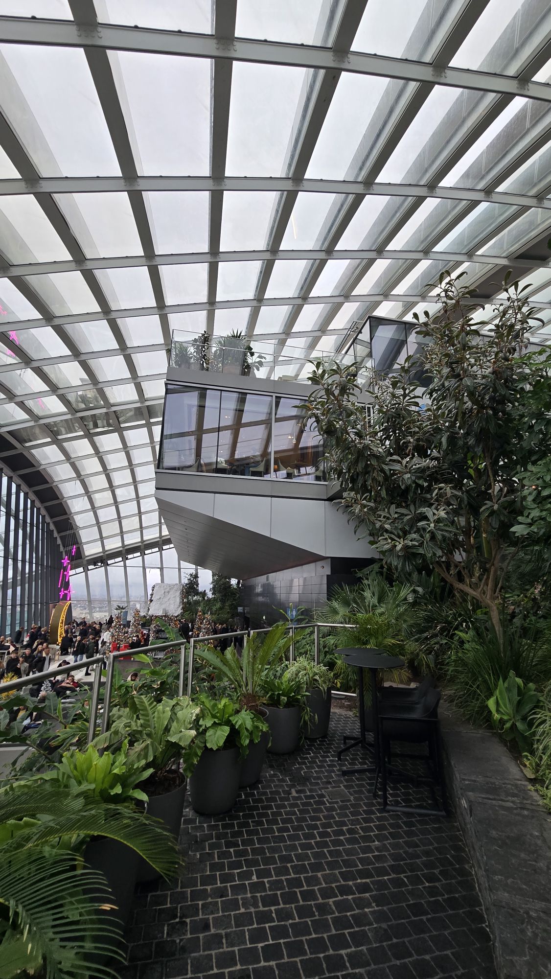 In apropiere, am vizitat Sky Garden, aflata la etajul 43 al cladirii Walkie Talkie, un spatiu cu gradini luxuriante, restaurant, bar, care ofera o priveliste panoramica asupra orasului (este gratuit, fiind necesara rezervare in prealabil, cu aproximativ 2-3 saptamani in avans). Poate fi o alternativa (pentru privelisti de sus) la plimbarea cu roata, London Eye, o atractie ceva mai aglomerata.